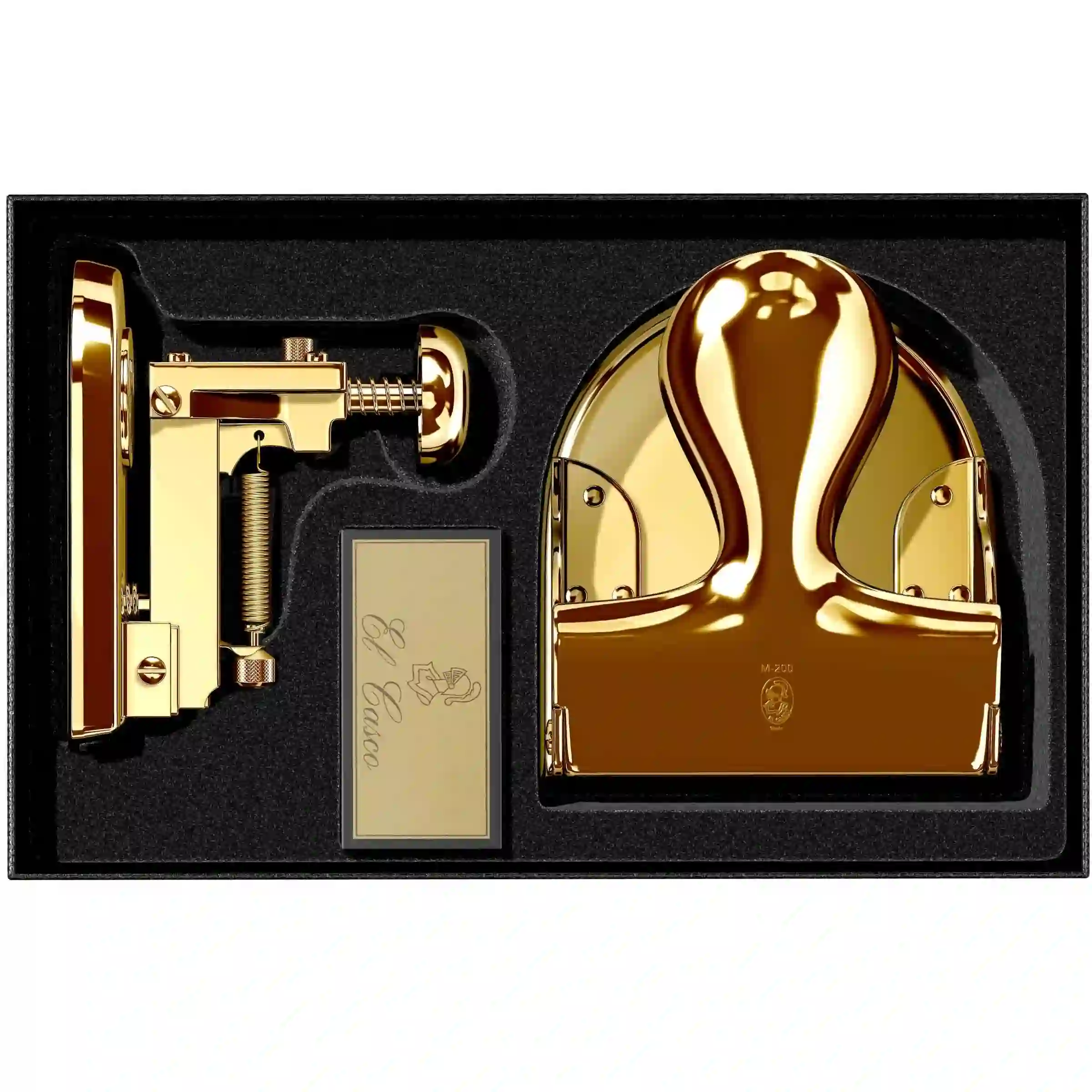 M-5 desk stapler & M-200 hole punch set. Both elements are 24k gold plated finish.
