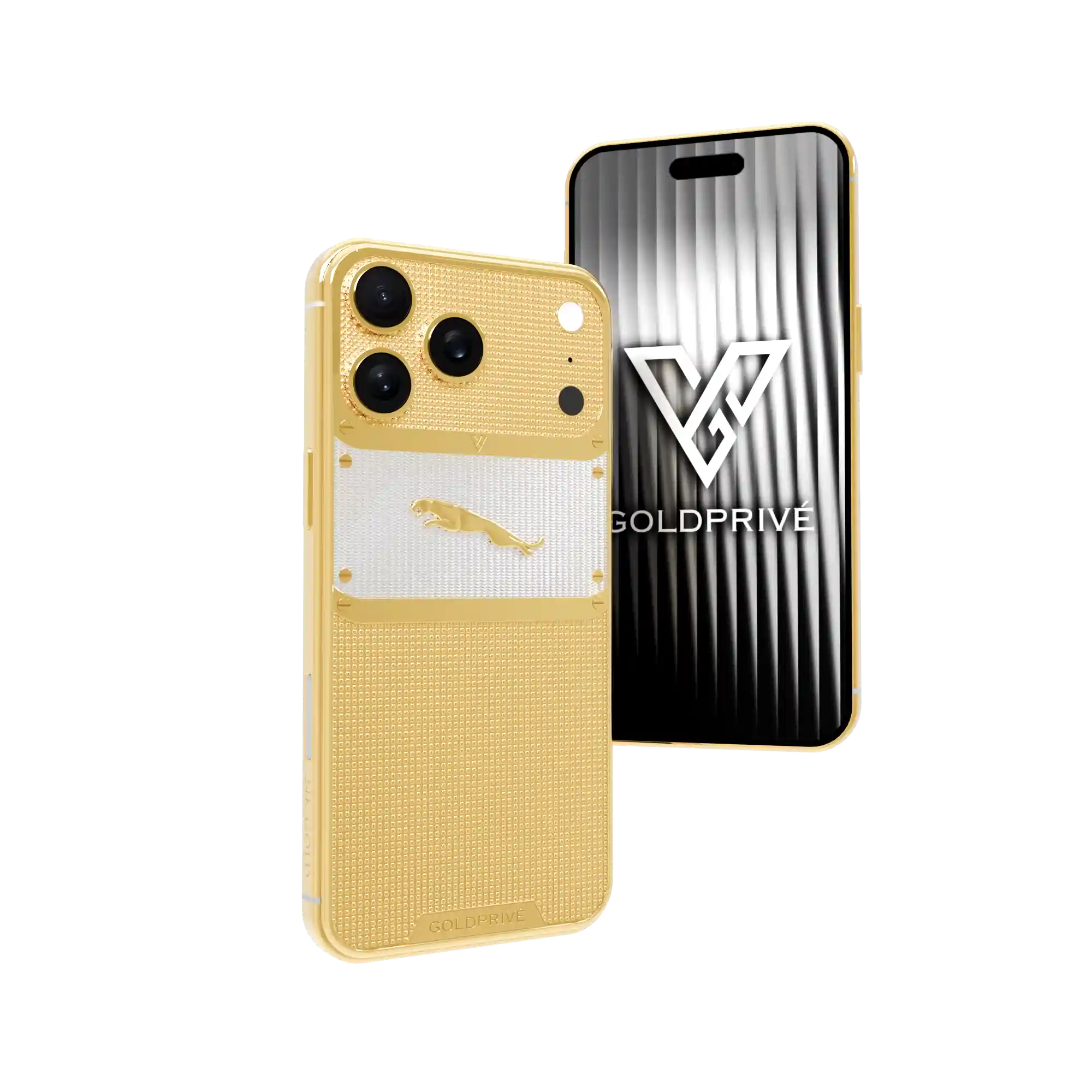 The GoldPrivé 24K Gold Apple iPhone 17 Pro & Pro Max Imperial Jaguar Edition is a commanding symbol of strength, precision, and refined luxury. The case and backplate are meticulously dual-plated in 24K Gold, Rose Gold, or Platinum, with a durable 5–7 micron thickness for exceptional brilliance and longevity.