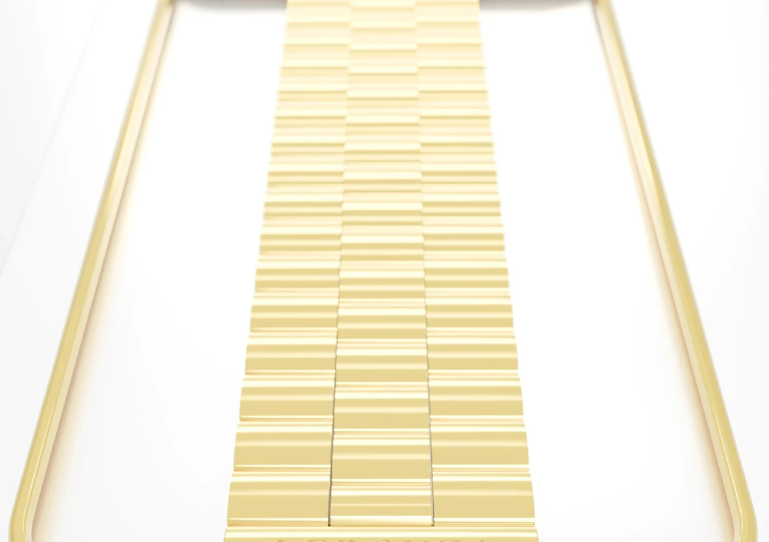 Running down the center is a bold, structured vertical strip of interlinked bars—each piece crafted from pure 18K Solid Gold—resembling a royal bracelet design. The visual harmony between the curved upper plate and vertical gold elements creates a distinct architectural masterpiece.