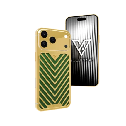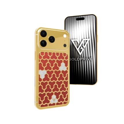 The surrounding frame is coated in rich 24K Gold Plating, seamlessly wrapping the device in a glow of pure sophistication. With 1TB or 2TB of internal storage, this luxury iPhone offers unmatched power, wrapped in opulent artistry.