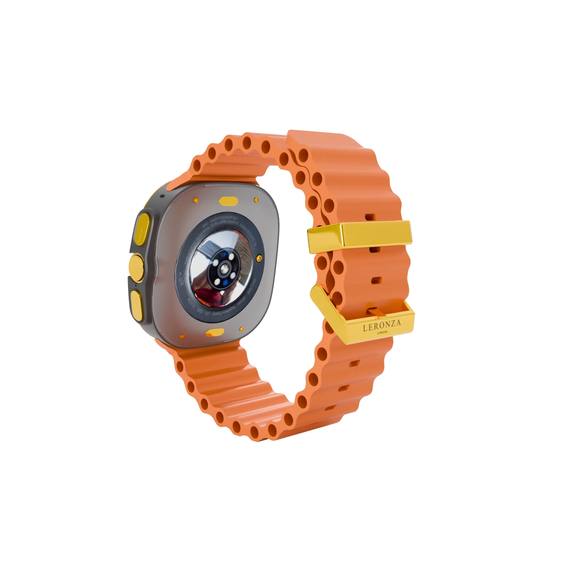 Its vibrant orange tone creates a powerful contrast against the 24K Gold, Rose Gold, or Platinum case, delivering a dynamic and contemporary look. Designed for both performance and style, the Orange Marine Band ensures a secure, comfortable fit, making the timepiece equally suited for active adventures and confident everyday wear.