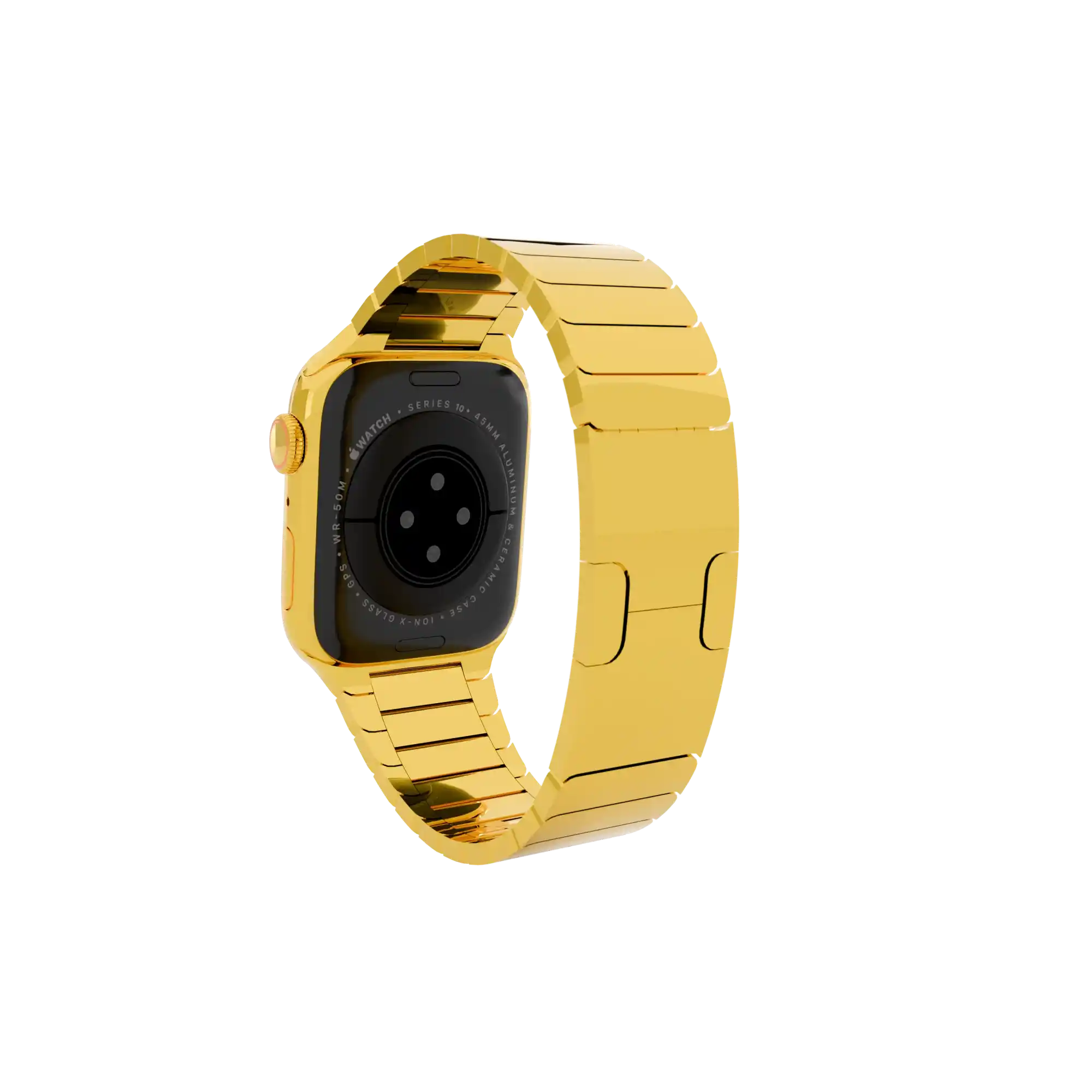 The GoldPrivé 24K Gold Apple Watch Series 11 – Elite Bracelet Edition showcases the exclusive Infinite Faces finish, delivering exceptional depth, brilliance, and a mirror-like radiance.