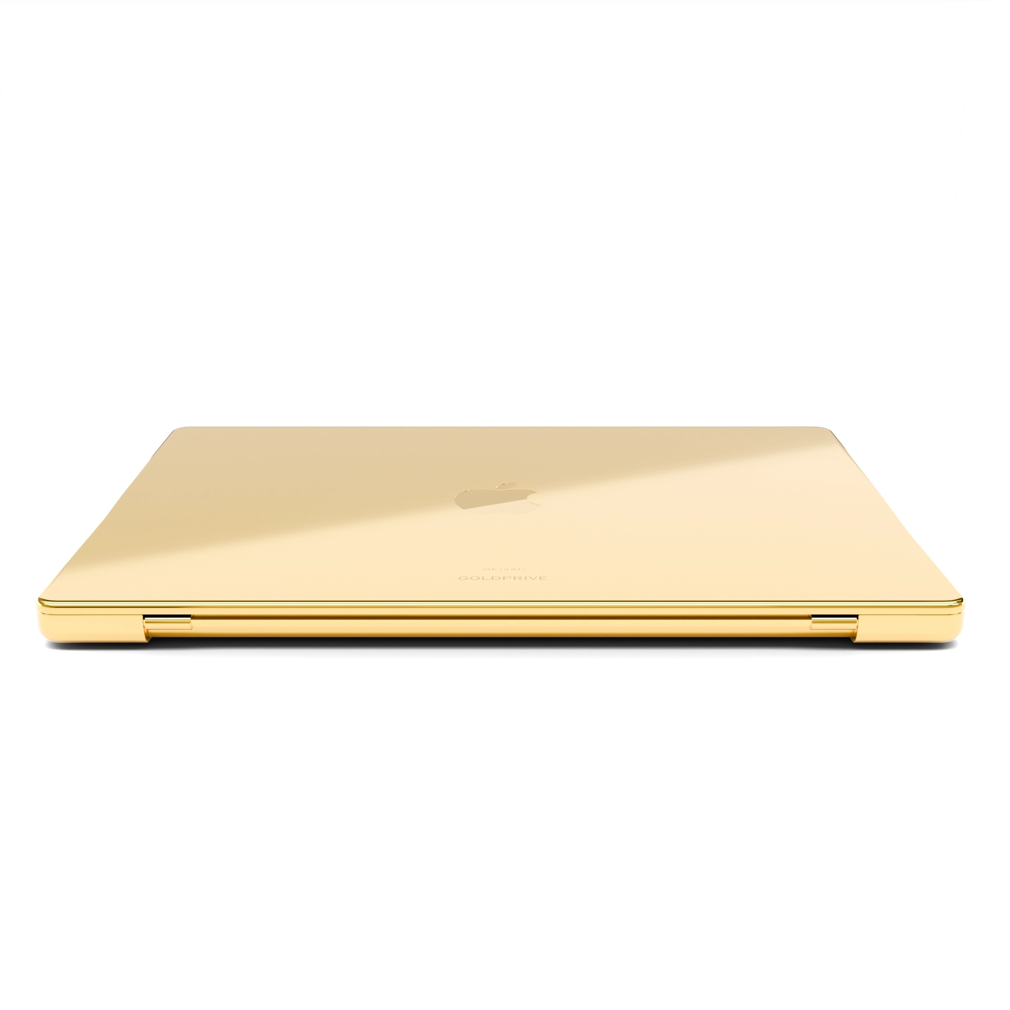 Reimagined by Goldprivé, the sleek Midnight MacBook Air is transformed into a statement of prestige. Its chassis is meticulously coated in 24K Gold, creating a striking balance between modern engineering and timeless elegance. For those who seek individuality, customization options extend to Rose Gold, Platinum, and bespoke gemstone detailing on the Apple logo.