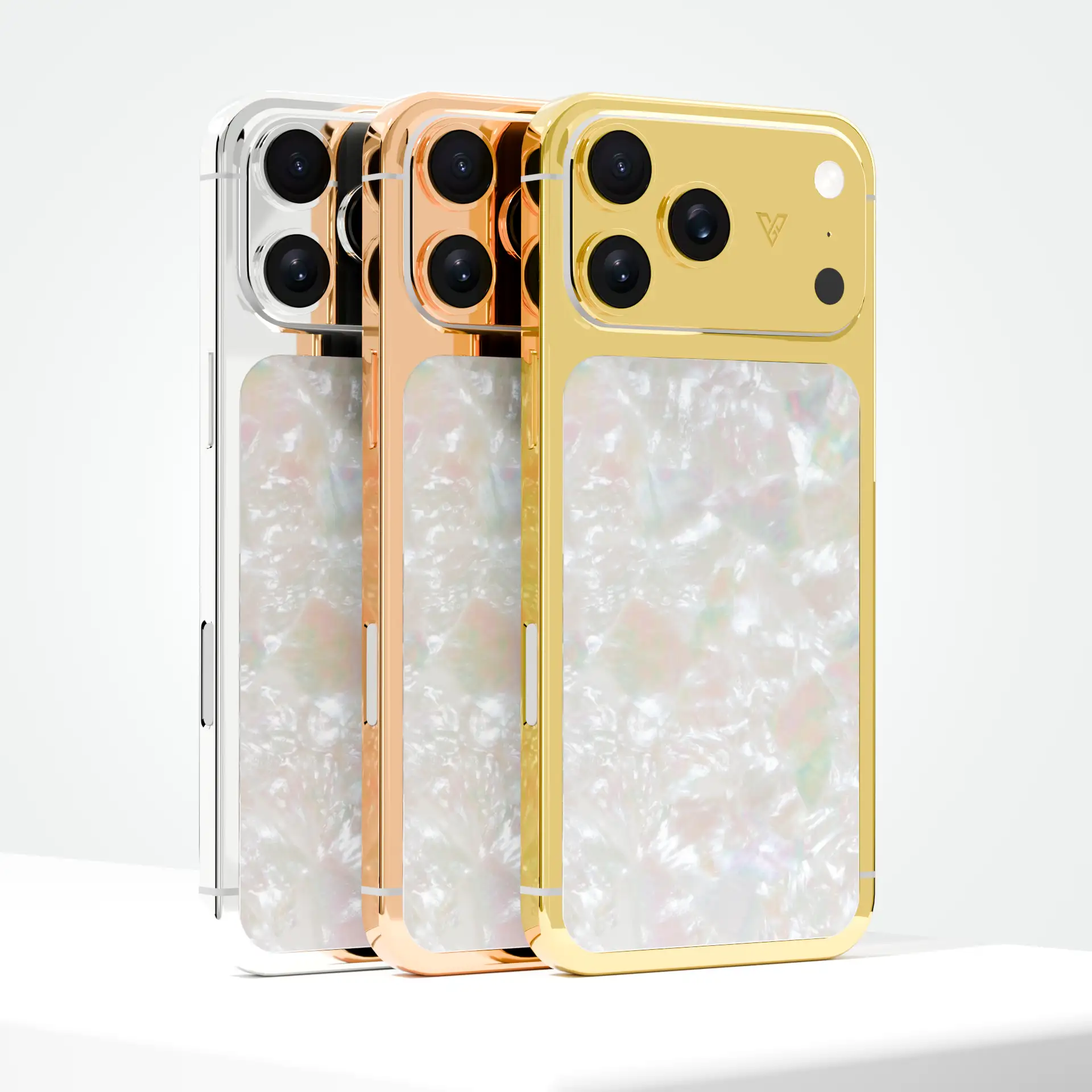 The GoldPrivé 24K Gold iPhone 17 Pro & Pro Max Pearl Majesty Link Edition represents the pinnacle of luxury and craftsmanship. The case and backplate are precision-plated in 24K Gold, Rose Gold, or Platinum, with a refined 5–7 micron thickness for enduring brilliance and durability.