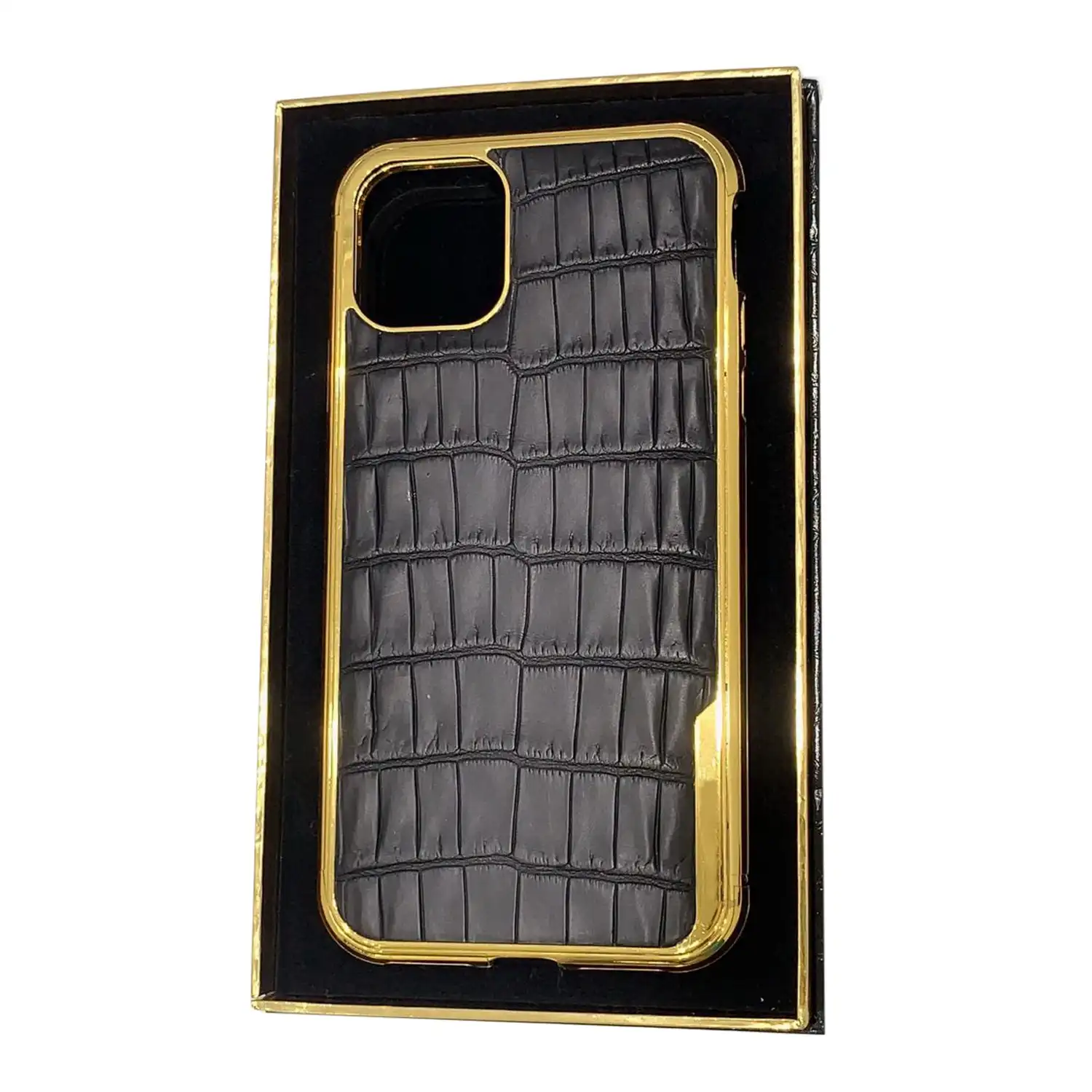 Enhance your iPhone with the Goldprivé 24K Gold Crocodile Leather Case Black. Delivered to you in just 2 weeks!