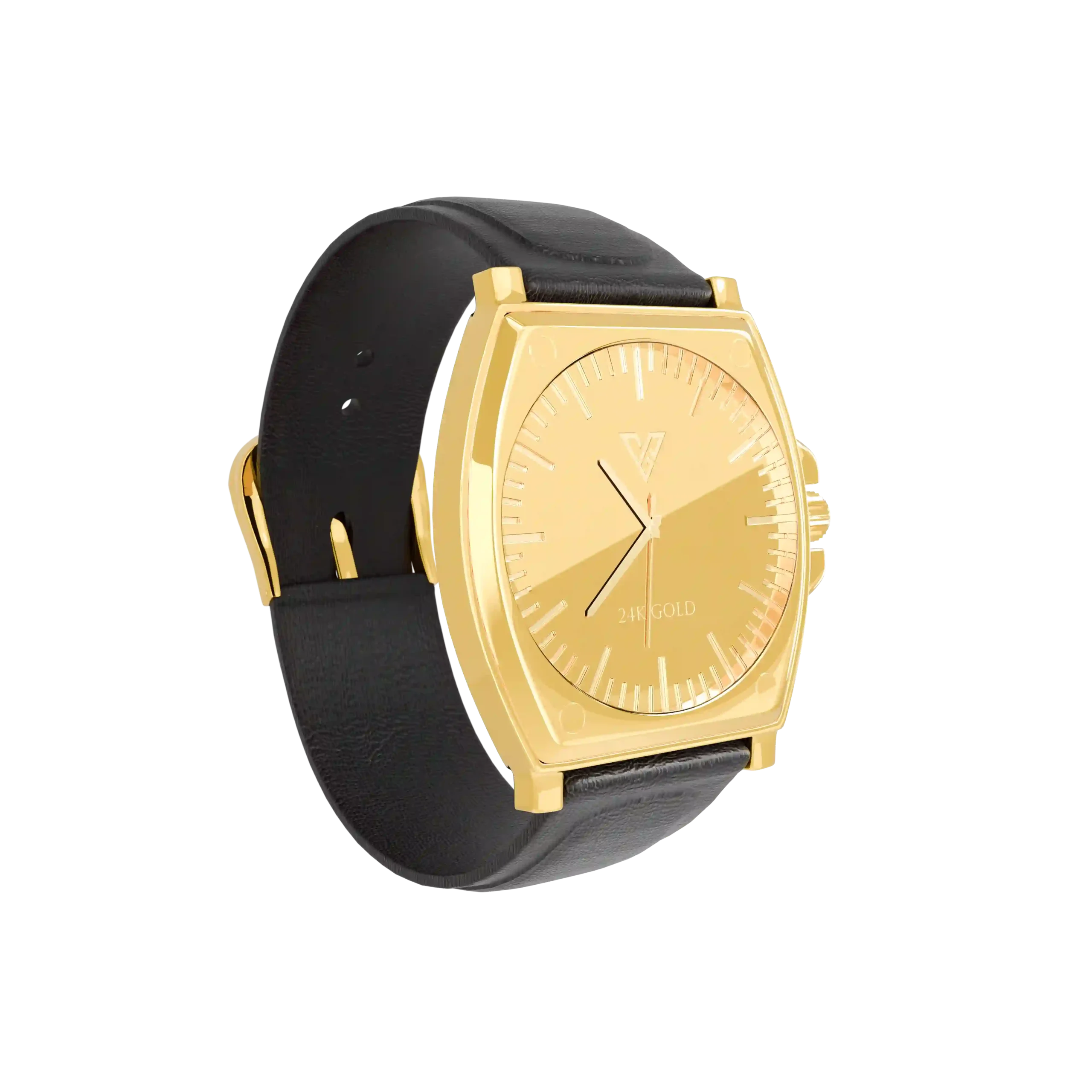 Transform this timepiece into a bespoke masterpiece with GoldPrivé’s luxury customization services. The stainless steel case, bezel, and genuine leather strap can be enhanced with 24K Gold, Rose Gold, or Platinum plating and detailing, allowing the watch to reflect your personal style.