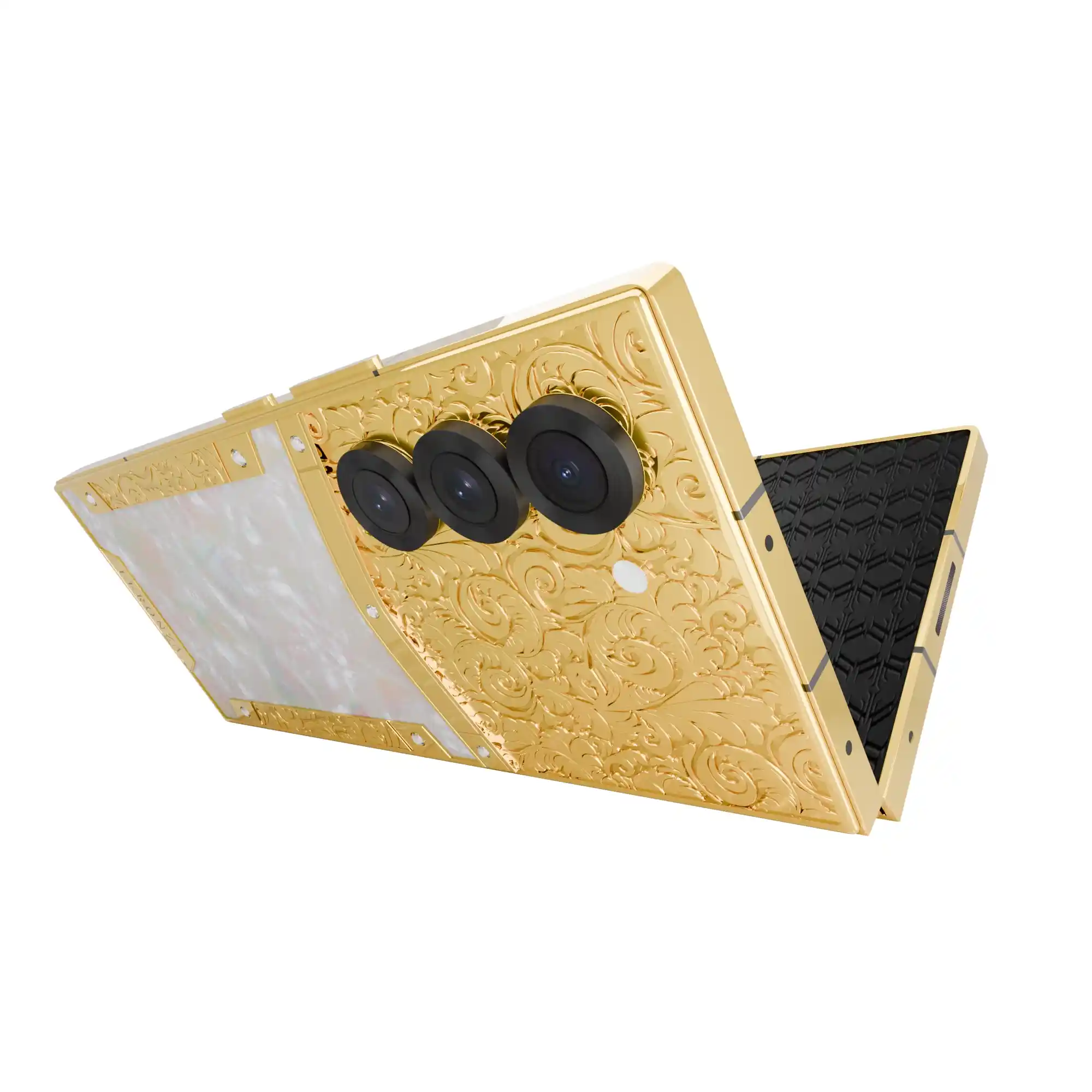 The Royale Edition boasts a perfectly crafted frame that seamlessly integrates with its luxurious plating and detailed Mother of Pearl design. The combination of high-end materials and precision craftsmanship ensures that your Fold7 is not only a powerful device but also a sophisticated accessory that exudes style and refinement. The 24K Gold, Rose Gold, and Platinum finishes offer a harmonious blend of elegance and durability, making this Phone a true statement piece.
