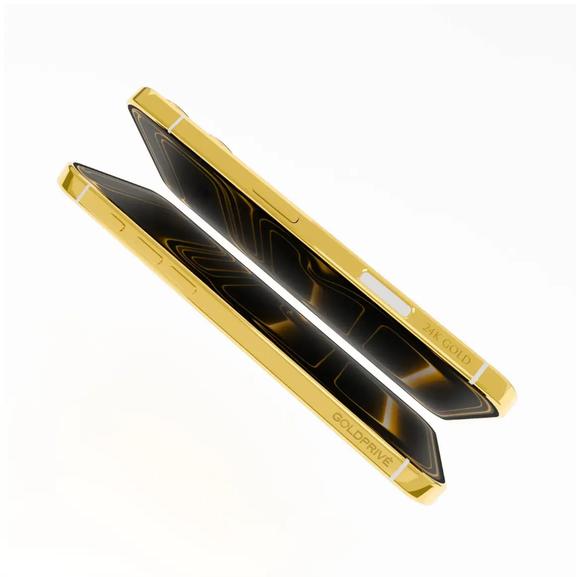 Framing the device is a flawlessly finished 24K Gold Plated chassis, meticulously crafted to ensure a seamless flow of brilliance around the entire body. Every edge and curve reflects light with a mirror-like gleam, turning this iPhone into more than just a device — it becomes a royal artefact of personal expression and prestige.