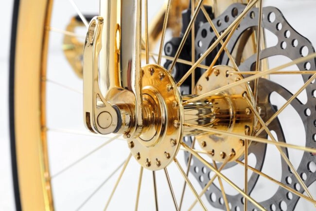 Goldprivé’s in-house team of expert artisans has transformed a classic men’s British racing bike into a true symbol of luxury through meticulous 24K gold customization. Every element of the bike has been carefully enhanced, with a radiant layer of pure 24K gold applied across the entire structure — from the tips of the drop handlebars to the wheel stays, and every intricate component in between, including the fine detailing of the gear chain.