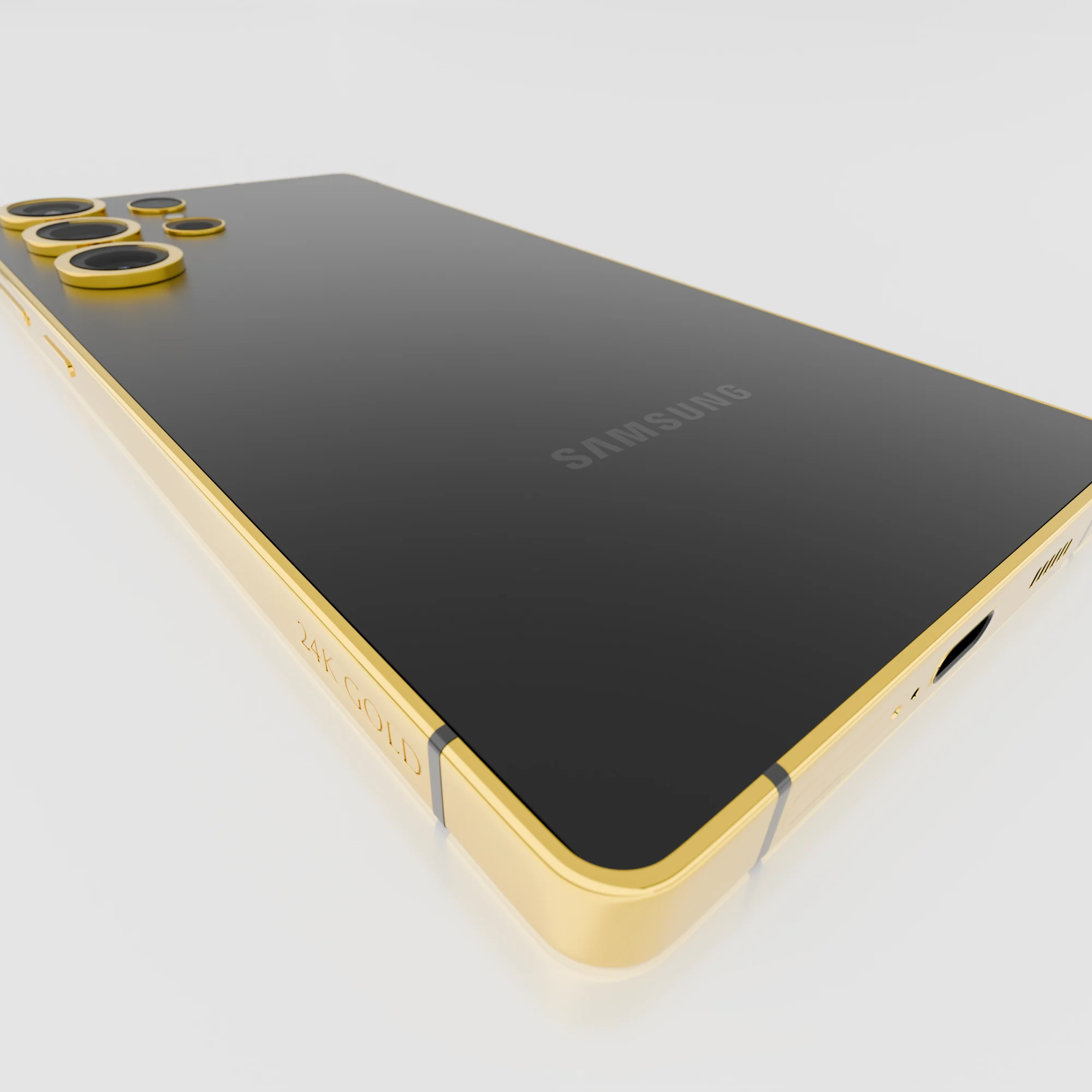The GoldPrivé 24K Gold Side Frame Samsung Galaxy S26 Ultra Black Classic Edition is a refined masterpiece of elegance and precision. Preserving the original back glass, this edition features a meticulously 24K gold-plated bezel and camera rings, with the logo encased in a precision laser-engraved gold border—defining the signature Classic aesthetic.